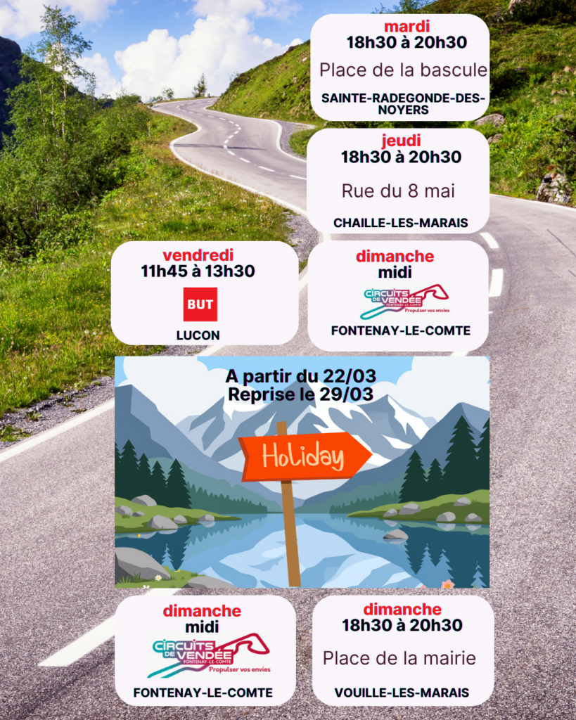 Notre foodtruck se déplace dans la région de Luçon et ses alentours, notamment à :
